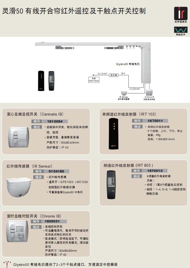灵滑50 有线开合帘红外遥控及干触点开关控制